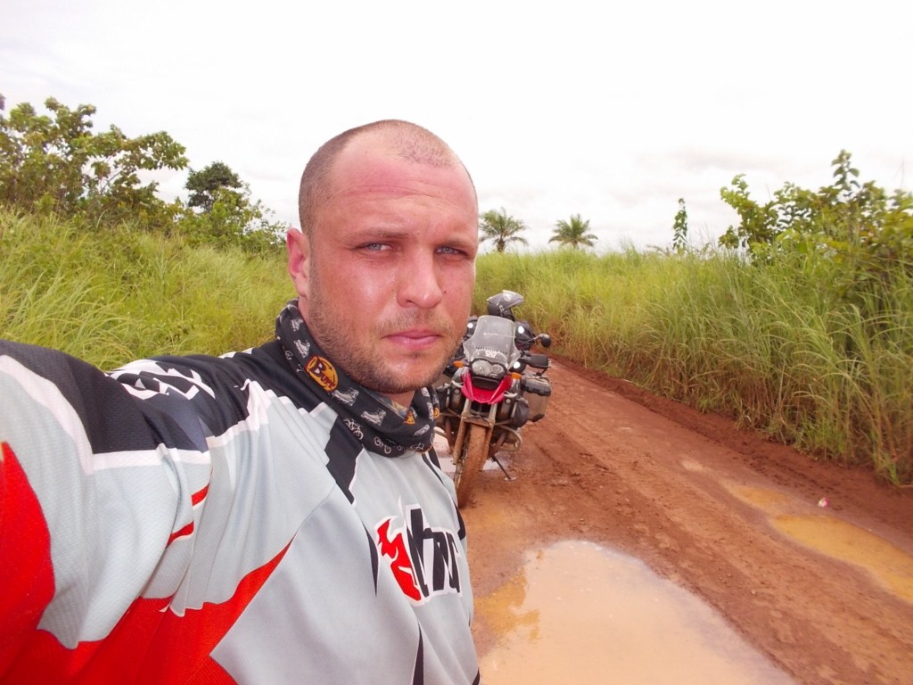 After another bad patch of mud I thought that this is recurring to often and I started to sweat a bit! I pulled over and had a break. I realised that I was moving really slowly and I didn’t bring enough water along for this midday heat. I didn’t thing to much of it while I snacked on my Mars bar and greeted yet another mother gathering some fruits and nuts for tonight’s family feast.