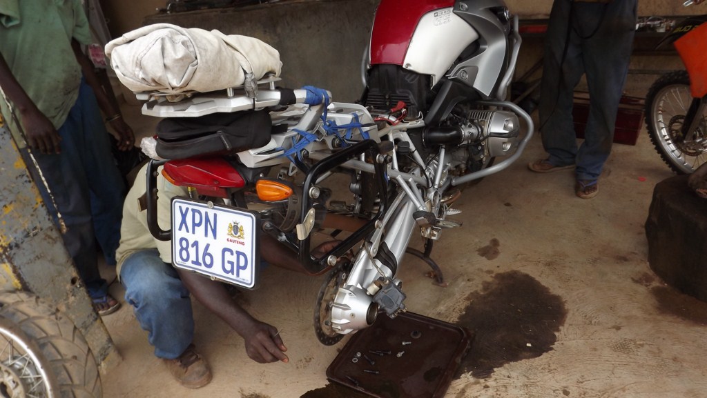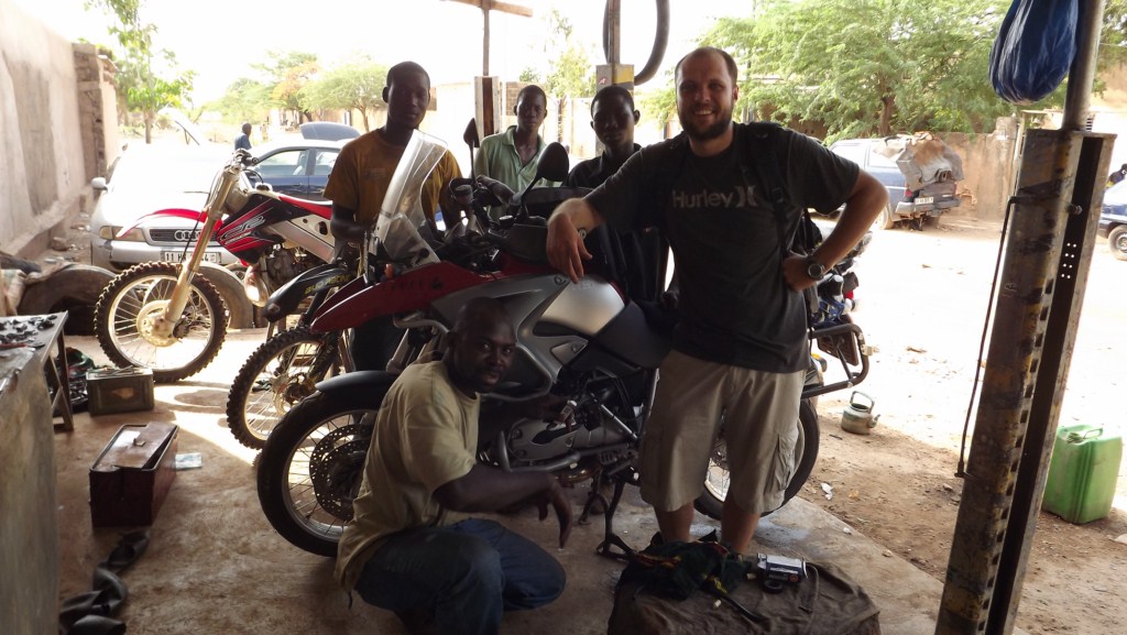 So back to Ouaga. My parts arrived the friday morning. I was put in touch with Hama the local motorbike mechanic in Ouaga who rides an 1150GS and 1200GS. He was a close friend of the hotel owner and they arrange the biggest MotoX event in west africa. I phoned Hama and he said no problem, he’ll send someone to collect me at the hotel. 20min later a guy pulled up on a bike and said follow me.