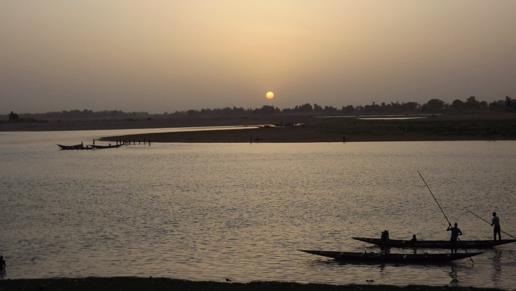 I rolled up just after 9am, Dave was expecting me and had some coffee going. We chilled and caught up on where and what we saw over the last couple of days we were split up. We went for a walk and hired a small Pinasse for a sunset cruise on the Niger River.