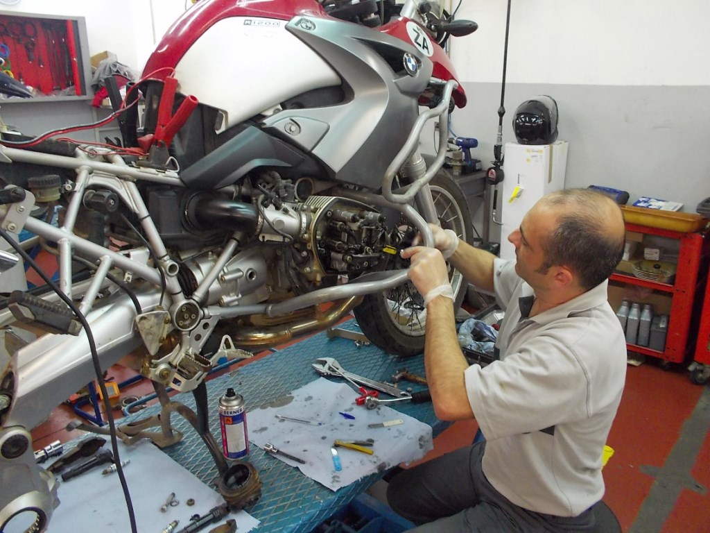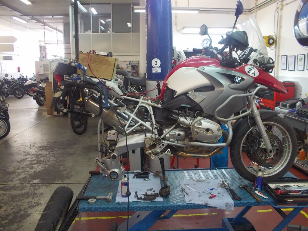 I got back down to the workshop as Francisco loaded my bike onto the lift. I explained to him what I wanted and he set off with my list of things to do.