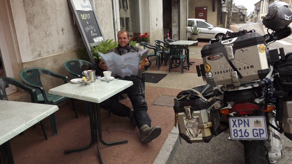 We stopped at a filling station about 200km before Paris in the middle of nowhere and decided to get something to eat while I filled up. Like all filling station here, you have to fill your own fuel and pay the fuel in store. Deidre found a small cafeteria that sold pre cooked food and we decided the make our own “boerewors” rolls. I have been dying for one the last couple of weeks. I ordered 4 small sausages, 1 bagguete and 1 plate of fries. I pushed my little tray towards the till and greeted “bonjour” and waited for the lady to give me my outstanding bill. She turned to me a said “46 Euro pleez”. I calmly said “Excuse me, how much?” I quickly converted the amount back into Rand and realised that it was 60$… I sarcastically said to her that her till must be broken and asked if she was sure that any person in the world would pay 60$ for 1 piece of bread, 4 SMALL sausages and a plate of cold chips. She just kept looking at me and shrugged her shoulders. I then simply looked back at her, shrugged my shoulders and said to her to take the tray and carefully place the sausages back where she found them because there is no F*#$ing way I was paying 60$ for 1 piece of bread, 4 SMALL sausages and a plate of chips. She understood and I walked towards the bike totally disgusted!