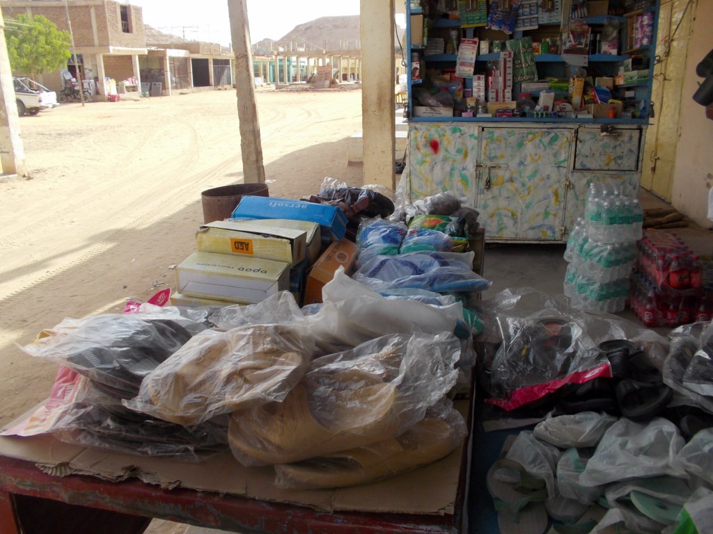 Walking through town you can see all the goods from the ferry displayed for sale.
